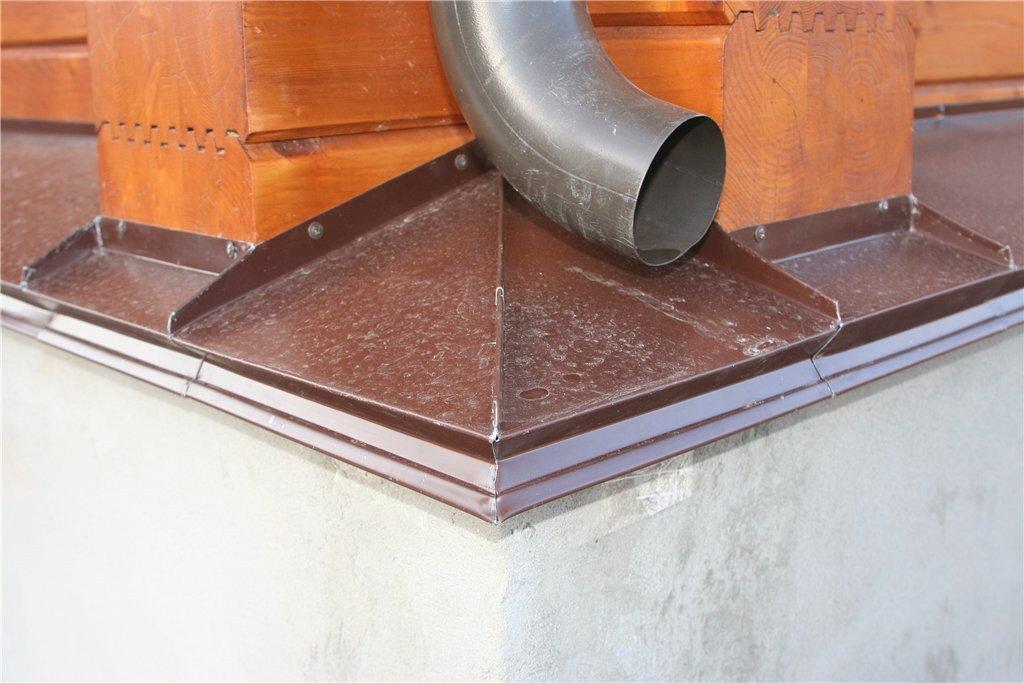 Бетонные, клинкерные, медные и алюминиевые отливы для деревянных коттеджей используются редко, поскольку резко увеличивают бюджет строительства. Их сложнее подгонять в узлах примыкания к венцам сруба, увеличивается отход кроя и время установки.
